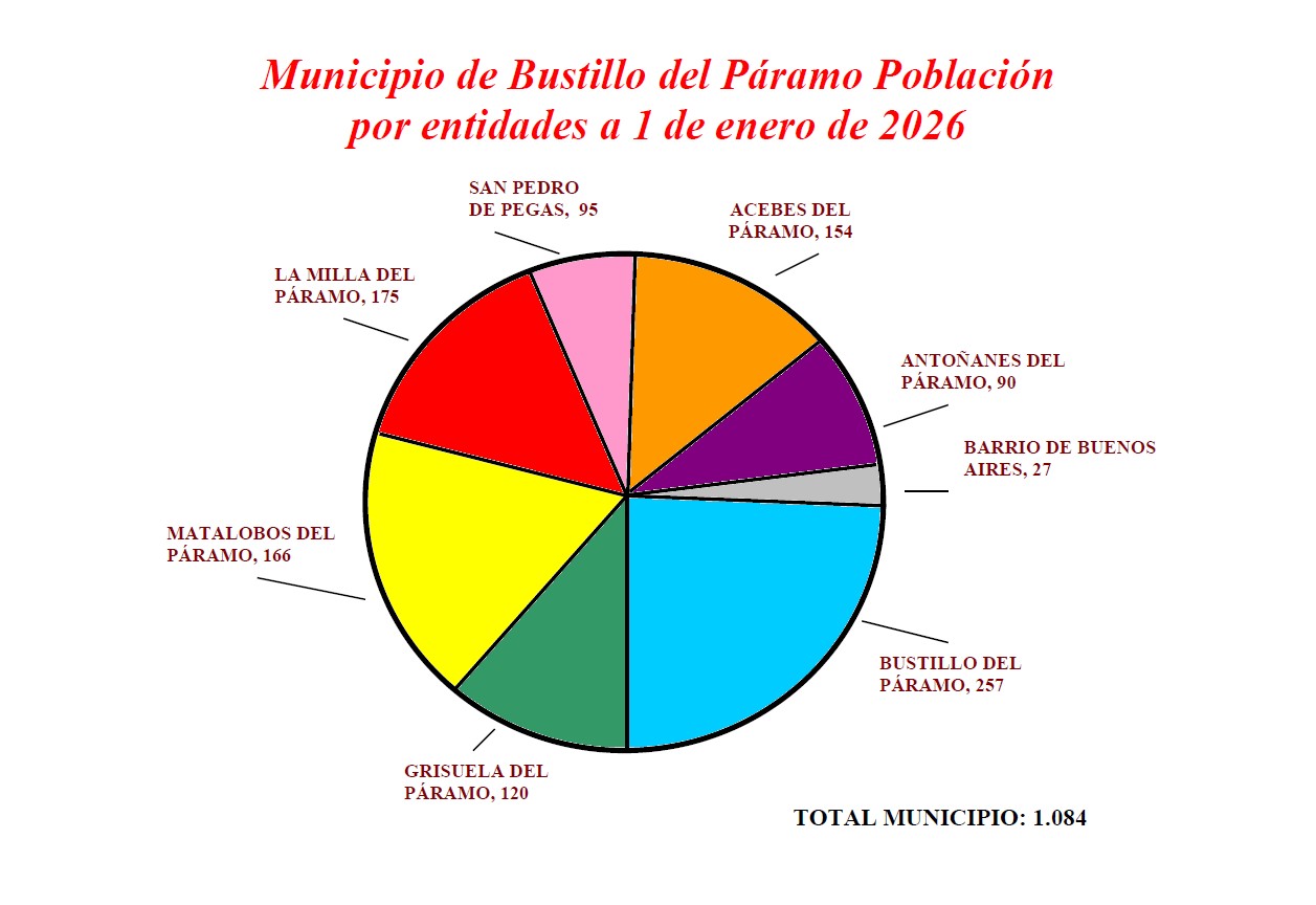 El término municipal de Bustillo del Páramo, con una extensión de 71,77 km.2, tiene una densidad de población de 15,10 habitantes por kilómetro cuadrado.